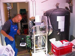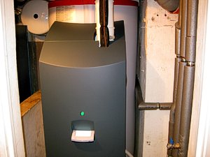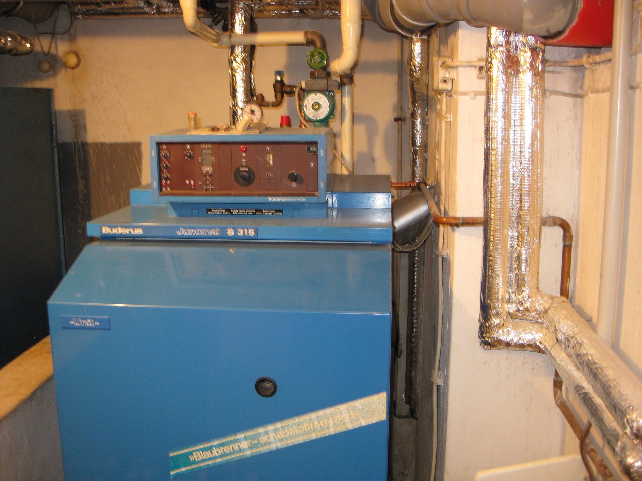 Der alte Heizkessel mit Warmwasserbereiter: |