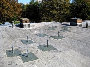 nicht tragfähig. Die erforderlichen Befestigungspunkte sind unterhalb der Dachoberfläche an der Holzbalkenkonstruktion verankert. |